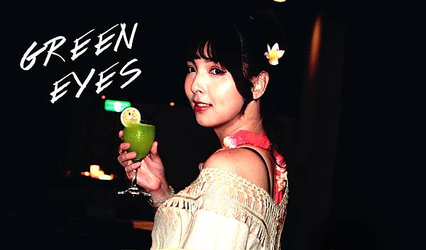 Green Eyes,顧名思義就是酒色中帶著微微的綠,可以嚐到鳳梨汁與哈蜜瓜香甜酒交織的酸甜、椰奶的甘醇濃厚,以及蘭姆酒的甜辛香氣,彼此之間完美的融合,不斷地刺激味蕾。據說它基本的酒譜是源自於以蘭姆酒為基酒的daiquiri (黛克瑞: 基本材料為萊姆汁及砂糖調和白蘭姆酒)。