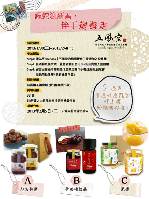 張貼於【五風堂的梅漬饗宴】粉絲團塗鴉牆或發文於個人部落格。